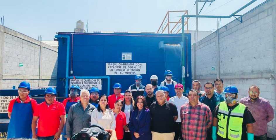 La gobernadora de Tlaxcala Lorena Cuéllar Cisneros realizó una visita a la planta de tratamiento de aguas residuales del taller de lavandería de mezclilla “Ekccolav”, propiedad de Valentín Huerta Hernández, ubicada en la comunidad de San Mateo Ayecac, municipio de Tepetitla, la cual se convirtió en la primera planta con inversión privada de la región.