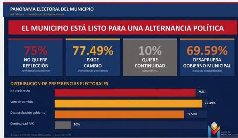 Ante este panorama, diversos sectores de la población consideran que el municipio se encuentra listo para una nueva etapa política, ya que el 77.49% exige un cambio de rumbo, en el que se privilegie el trabajo cercano con la ciudadanía y se atiendan las demandas más urgentes de las comunidades.