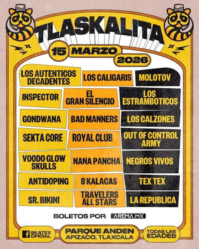 Apizaco se alista para uno de los eventos musicales más esperados del año, pues como parte del gran cierre de la Feria de Apizaco 2026, el próximo 15 de marzo el Festival Tlaskalita llegará al Parque Andén para reunir a destacados exponentes del rock, ska y reggae en una jornada llena de ritmo, energía y ambiente festivo.