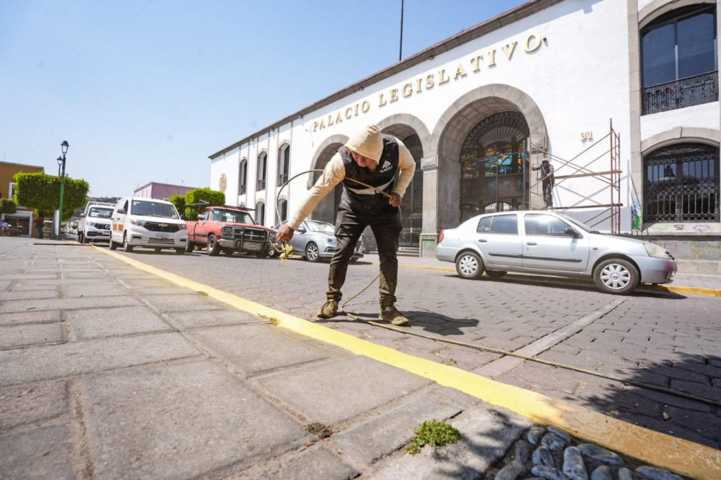 El Ayuntamiento de Tlaxcala, que preside Alfonso Sánchez García, a través de la Dirección de Obras Públicas, continúa con las acciones de mejoramiento urbano en tres distintos puntos de la capital a través de brigadas de “Menos escritorio y más territorio”, mediante la colocación de pintura en guarniciones de vialidades con alta afluencia peatonal y vehicular, como parte de la estrategia para rescatar la ciudad y mantener en buenas condiciones la infraestructura urbana.