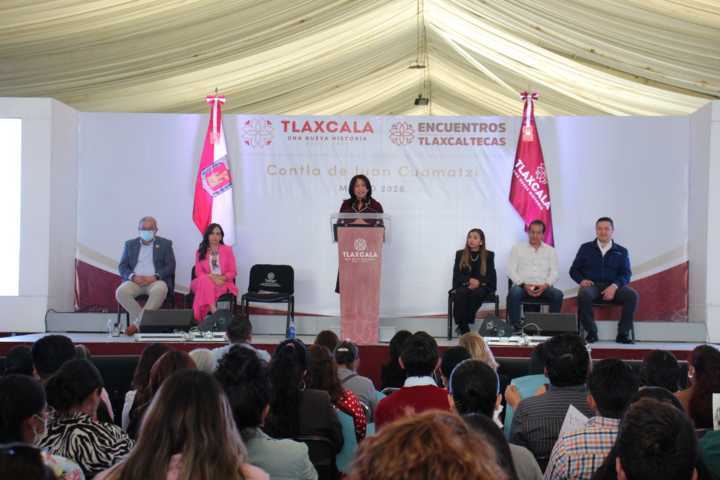 La tarde de este lunes, el municipio de Contla de Juan Cuamatzi fue sede de los "Encuentros Tlaxcaltecas", espacio de diálogo y cercanía encabezado por la Gobernadora Lorena Cuéllar Cisneros y la Alcaldesa Ana Ivonne Roldán Xolocotzi, donde se presentaron los logros y obras que han beneficiado a este municipio durante los últimos cuatro años en rubros como educación, salud, infraestructura y bienestar social.