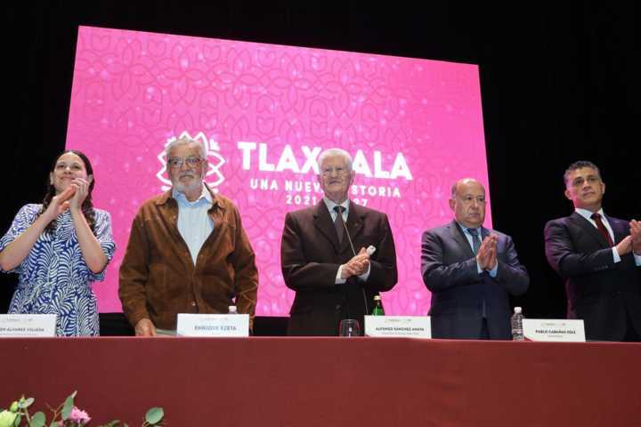 En el Teatro Xicoténcatl se llevó a cabo la presentación del libro “Tlaxcala, un mejor lugar para vivir”, obra dedicada a la trayectoria del exgobernador Alfonso Sánchez Anaya (1999–2005), evento al que asistió la gobernadora Lorena Cuéllar Cisneros.
