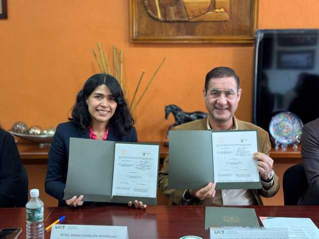La firma del acuerdo se llevó a cabo en la Sala de Juntas de Rectoría de la UVT, con la participación del rector de la institución, Mtro. Miguel García Méndez, y la presidenta municipal de Tlaxco, Diana Torrejón Rodríguez, así como autoridades municipales y directivos del SMDIF.