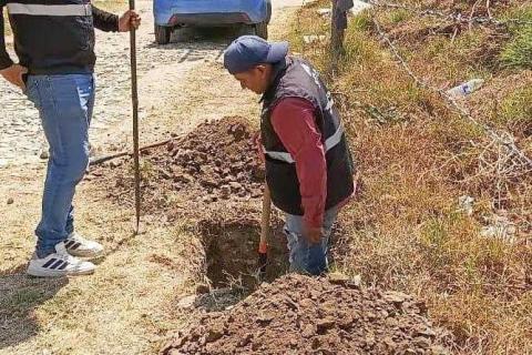 Como parte de estas labores, en la comunidad de Ocotlán se realizaron trabajos de preparación de cajetes para la colocación de postes de luz, infraestructura que permitirá mejorar el servicio de alumbrado público.