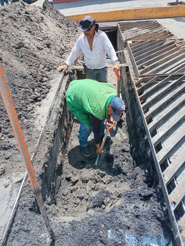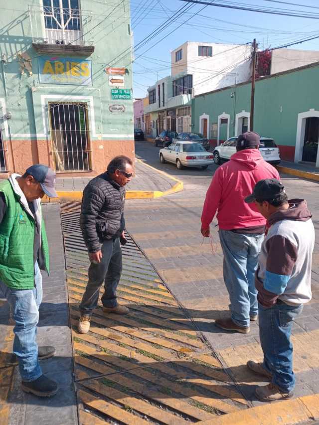 Durante la jornada, se llevaron a cabo labores de desazolve y limpieza de alcantarillas en las calles Hidalgo y Guerrero, acciones que permiten mejorar el flujo del sistema sanitario y prevenir posibles obstrucciones que afecten el servicio.