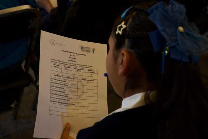 Durante la jornada realizada en Huamantla se llevó a cabo la presentación e instrucciones de participación, seguida de la disertación de las niñas y los niños participantes, quienes compartieron sus puntos de vista y propuestas sobre diversos temas de interés social. La exposición de cada participante constituye el medio mediante el cual se emite el voto entre los propios asistentes para elegir a quienes representarán a su distrito en la siguiente fase del proceso.