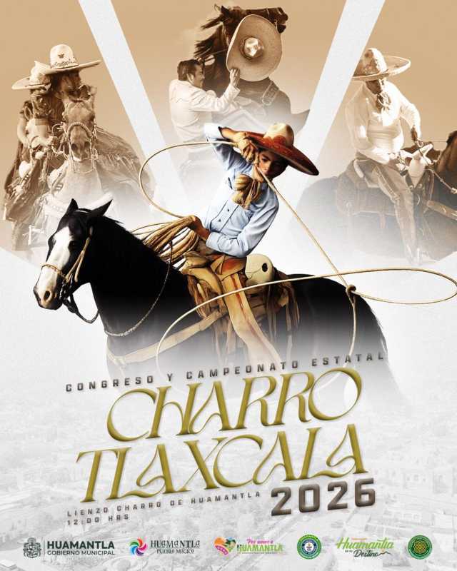 El municipio de Huamantla será escenario del Congreso y Campeonato Estatal Charro Tlaxcala 2026, una de las celebraciones más importantes de la charrería en la entidad, que reunirá a destacadas asociaciones charras en el Lienzo Charro de Huamantla para participar en esta etapa del certamen estatal.