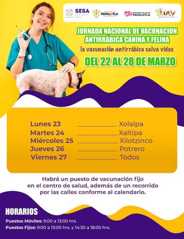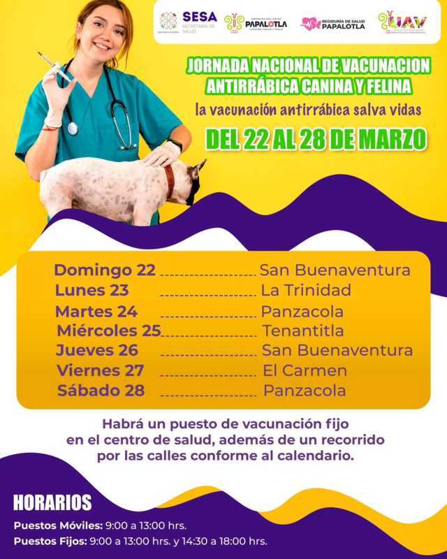 La jornada, que lleva por lema "la vacunación antirrábica salva vidas", contempla la instalación de puestos de vacunación fijos en el centro de salud, así como brigadas móviles que recorren las distintas localidades y colonias del municipio conforme a un calendario establecido.