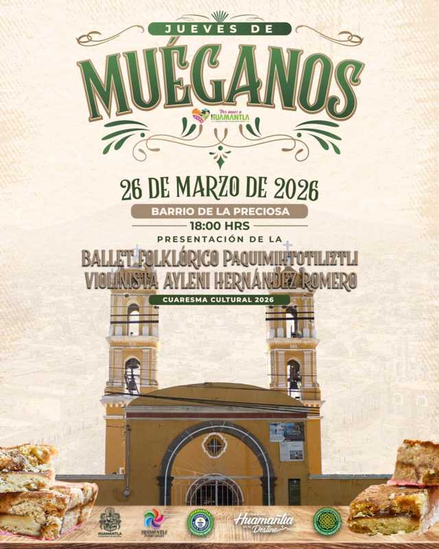 El Gobierno Municipal de Huamantla que encabeza Salvador Santos Cedillo invita a la ciudadanía a disfrutar del “Jueves de Muéganos”, que en esta ocasión se llevará a cabo el próximo 26 de marzo en el barrio de La Preciosa.