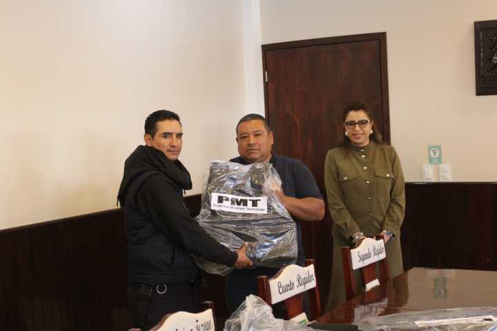 Atlangatepec, Tlaxcala.— Con el objetivo de reforzar la seguridad en el municipio y brindar mejores condiciones a los cuerpos policiacos, el Ayuntamiento de Atlangatepec llevó a cabo la entrega de equipamiento a elementos de la Policía Municipal, destacando la dotación de chalecos balísticos como parte del equipo de protección.