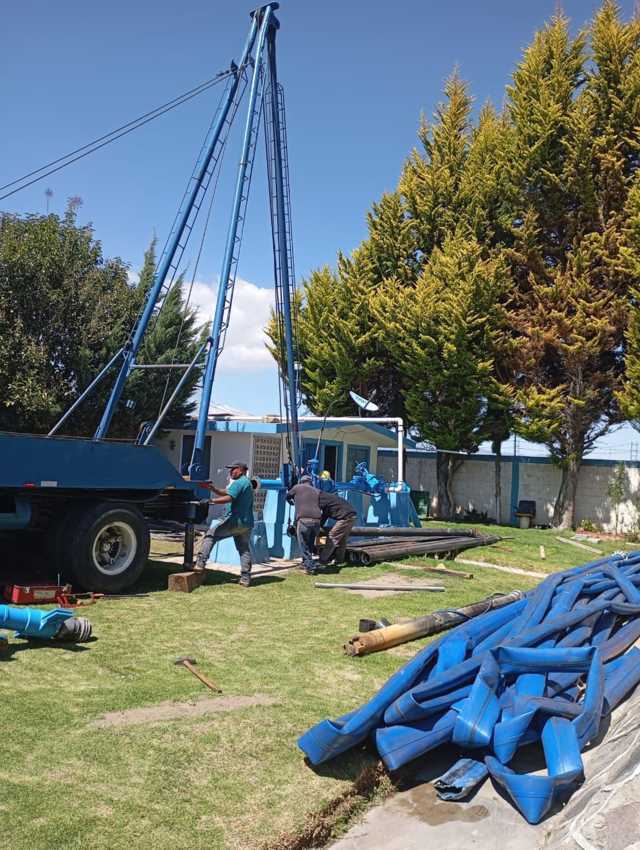 Como parte de estas labores, se llevaron a cabo importantes intervenciones técnicas, entre las que destacan la sustitución de la columna de impulsión mediante la instalación de tubería de acero, lo que incrementa la resistencia estructural del sistema, reduce pérdidas de carga y mejora la conducción hidráulica.