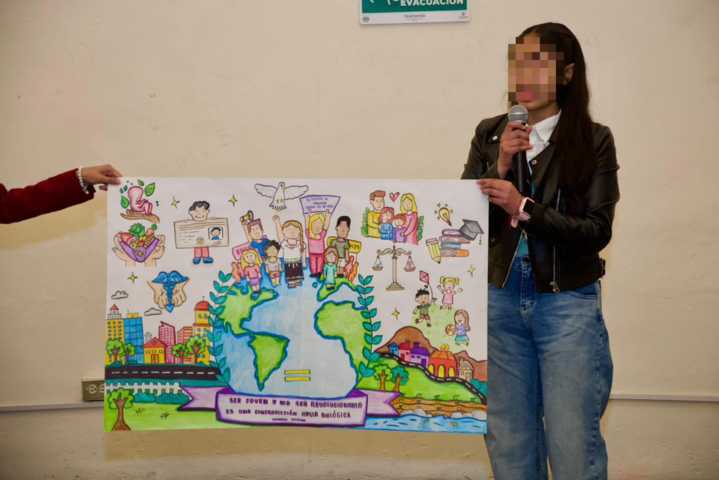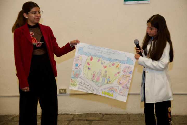 Durante la jornada, las y los participantes presentaron creaciones artísticas en las que plasmaron, desde su perspectiva, la importancia de garantizar derechos fundamentales como la educación, la salud, la igualdad y la protección, fortaleciendo así su formación como agentes de cambio en sus comunidades.