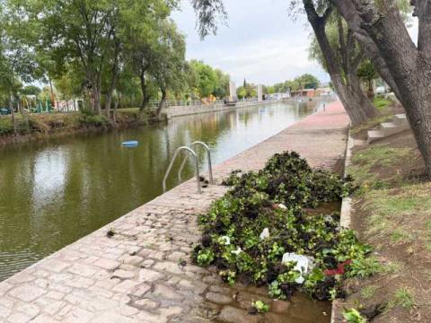 La dirección de Ecología limpió la presa, retirando lirio acuático para recibir a la comunidad este Sábado de Gloria . "La limpieza es fundamental", recalcan.