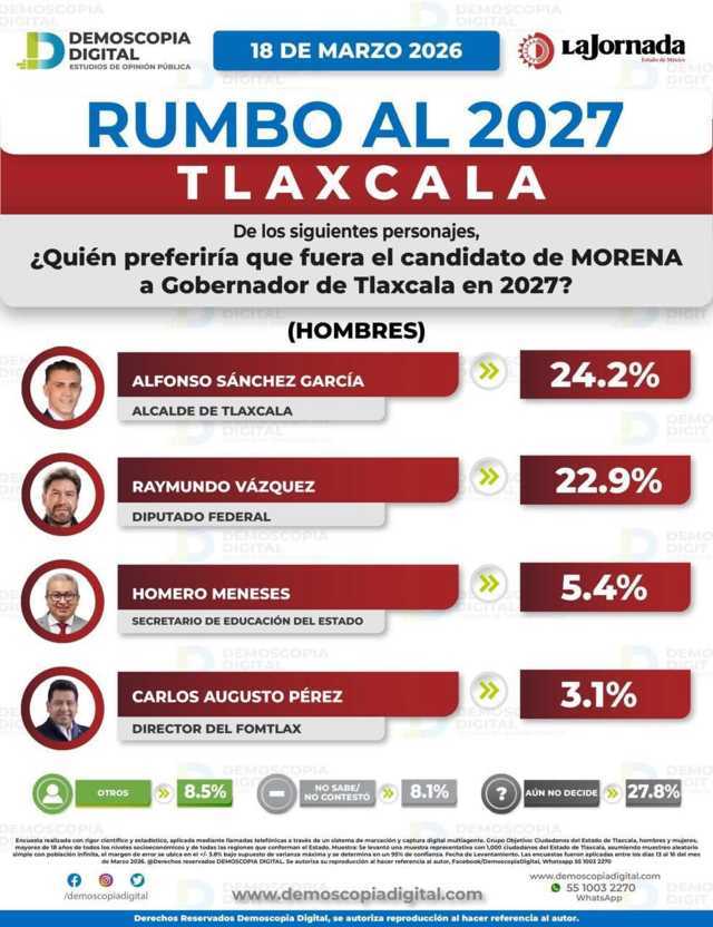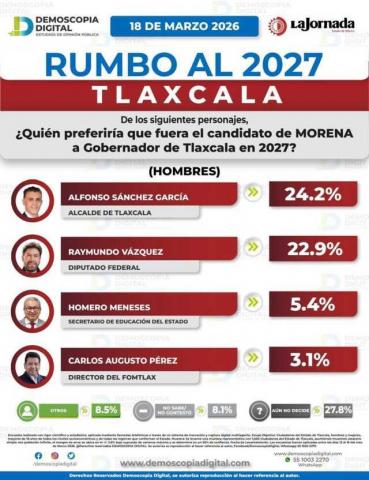 De acuerdo con el más reciente estudio de opinión pública realizado por la encuestadora Demoscopia Digital, el actual alcalde de la capital, Alfonso Sánchez García, se posiciona como el perfil favorito entre las y los tlaxcaltecas para representar a MORENA en la contienda por la gubernatura del estado en 2027.