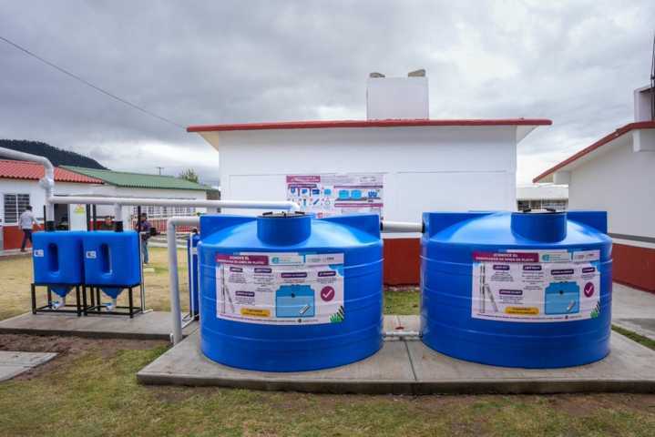 Como parte de las acciones, se instalaron sistemas de captación de agua pluvial con capacidad de entre 5 mil y 10 mil litros, lo que permite reducir hasta en un 75 por ciento el consumo de agua en los planteles beneficiados.