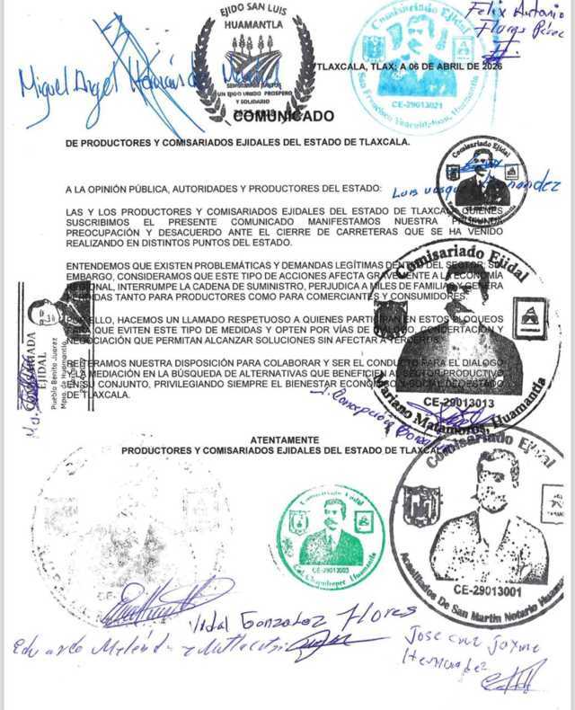 En este escenario, autoridades estatales señalaron que se dará seguimiento puntual a los planteamientos del campo tlaxcalteca, buscando generar acuerdos que permitan atender las problemáticas que enfrenta el sector, sin perder de vista el orden y la estabilidad social.