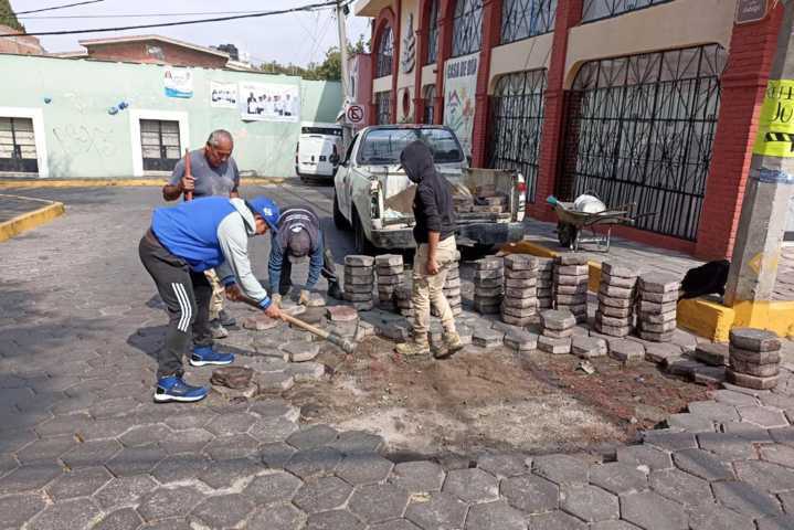 Asimismo, se realizaron trabajos de nivelación de adoquín en la calle Hidalgo, en sus cruces con calle Del Norte y calle Lira y Ortega, acciones que permiten mejorar la movilidad y brindar mayor seguridad a peatones y automovilistas.