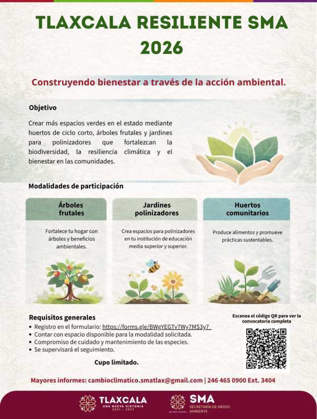 El titular de la Secretaría de Medio Ambiente (SMA), Pedro Aquino Alvarado, presentó la convocatoria “Tlaxcala Resiliente 2026” durante el Diálogo Circular de este jueves, como parte de una nueva estrategia para fortalecer la adaptación al cambio climático en la entidad.
