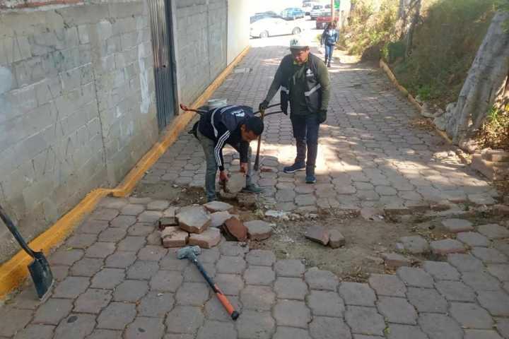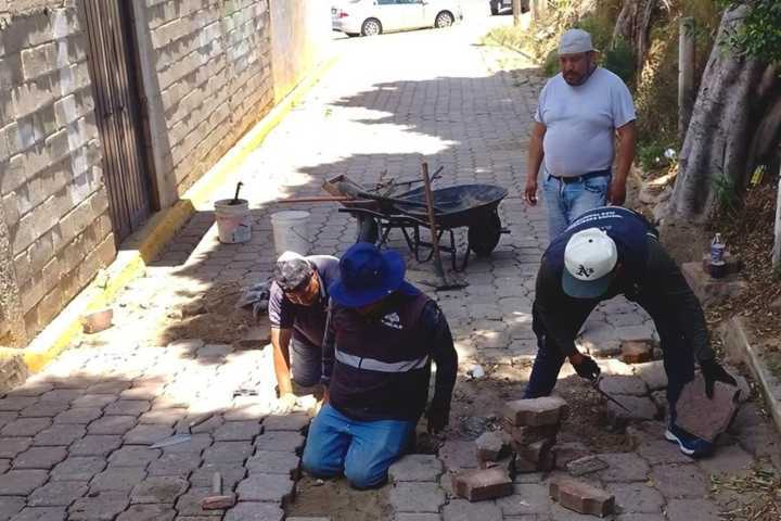 Como parte de la jornada de este día, en la calle Reforma de Ocotlán Centro, continuaron los trabajos de nivelación de adoquín para mejorar la movilidad y seguridad de peatones y automovilistas. De igual forma, se brindó apoyo en el callejón Adolfo López Mateos, en la misma zona, donde también se realizaron acciones de rehabilitación de la vialidad.