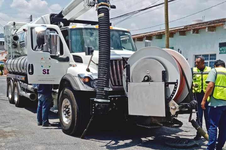 Las brigadas también llevaron a cabo labores de desazolve de rejillas y coladeras en la delegación Adolfo López Mateos, con el propósito de prevenir encharcamientos y reducir riesgos durante la temporada de lluvias.