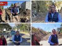 Durante un recorrido técnico, el presidente municipal de Papalotla verificó el progreso de obras de drenaje, pavimentación y un puente que fortalecerá la comunicación entre barrios.