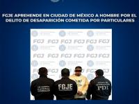 FGJE aprehende en Ciudad de México a hombre por el delito de desaparición cometida por particulares e tlaxcala redacciónLa Policía de Investigación ubicó al imputado en la alcaldía Venustiano Carranza, donde fue aprehendido en coordinación con la FGJCDMX.