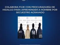 La Fiscalía General de Justicia del Estado (FGJE) colaboró con la Procuraduría General de Justicia del Estado de Hidalgo (PGJEH) para aprehender a Juan Carlos N., por su presunta responsabilidad en el delito de secuestro agravado.