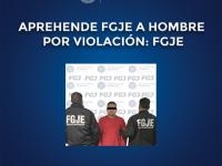 Por su presunta responsabilidad en el delito de violación cometido en agravio de una menor de edad, elementos de la Policía de Investigación de la Fiscalía General de Justicia del Estado (FGJE) aprehendieron a Miguel Ángel N.
