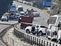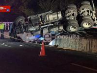 El accidente se registró cuando la unidad, que transportaba bebidas azucaradas, perdió el control por causas que aún se investigan, quedando volcada a un costado de la vía.