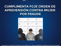 Cumplimenta FGJE orden de aprehensión contra mujer por fraude
